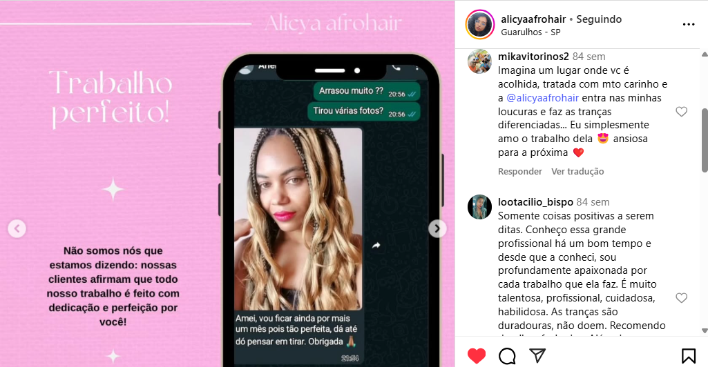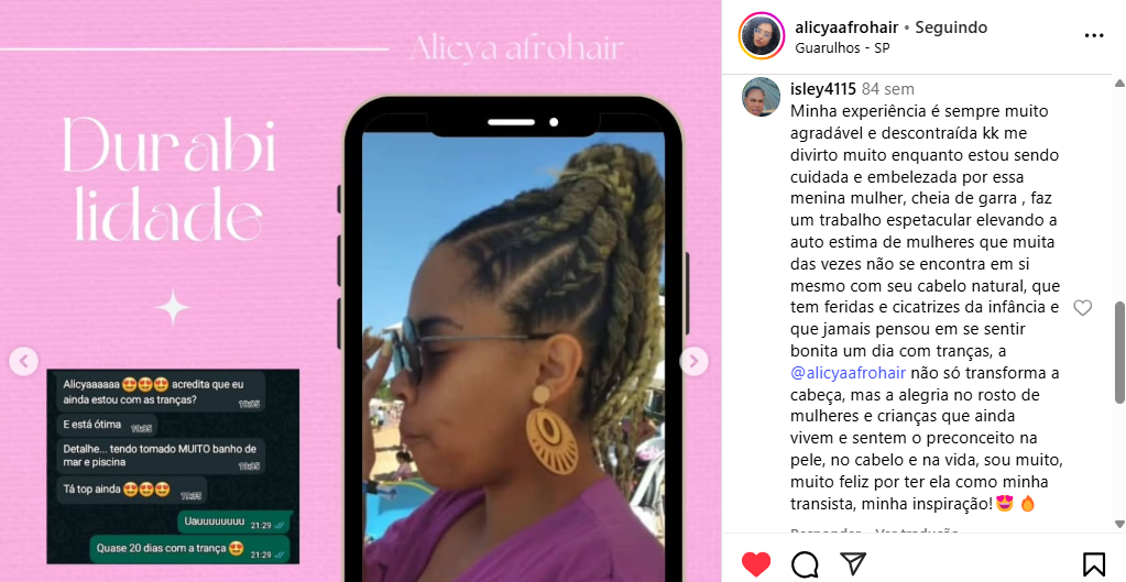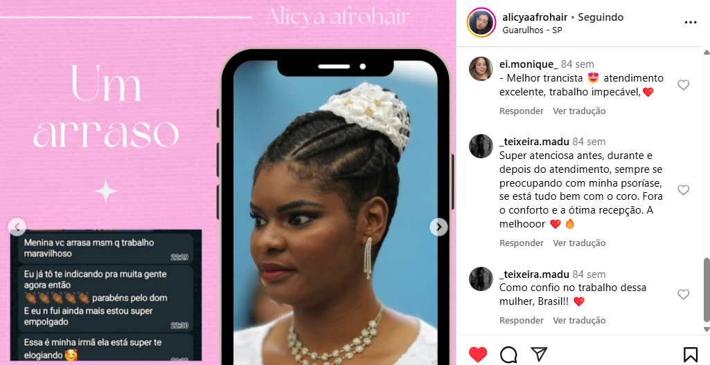 Na Alicyar Afrohair, ofereço uma variedade de serviços especializados em tranças afro, penteados trançados e estilos personalizados para todos os gêneros e ocasiões. Conheça algumas de nossas opções: